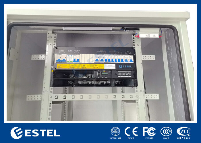Um ar condicionado e dois ventiladores de emergência são instalados na porta do armário, para manter uma temperatura adequada dentro do recinto e, assim, prolongar o tempo de vida do equipamento de telecomunicações.A ESTEL®s oferece muitos modelos de ar condicionado para os clientes escolherem.O ar condicionado também fornece uma interface de comunicação para ligação ao sistema de monitorização superior do cliente.